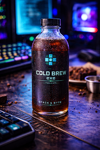 coldbrew.exe is a novelty energy drink brand that leans hard into tech / gamer humour. The name riffs on: